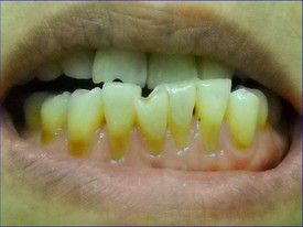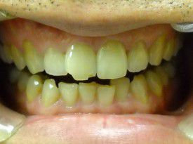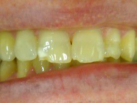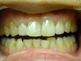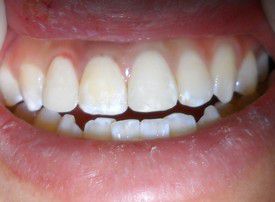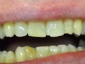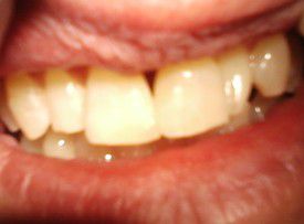 The enamel abrasion and exposed root surfaces make her teeth look very yellow. She can't afford veneers. Our composite bondings protected the teeth and lightened her smile significantly.