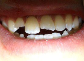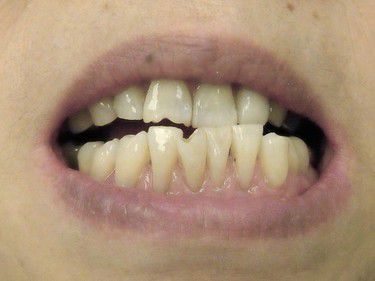 Before: A 14 year old broke his front teeth on Saturday night. After: The teeth are restored the next day. He's free of pain and able to go to school on Monday without being embarrassed.