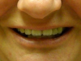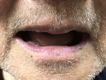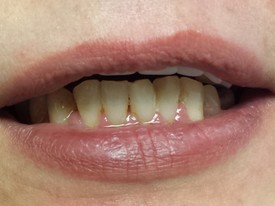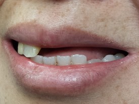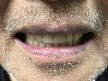 Although he has only 3 teeth left on the lower jaw, we were able to design and make a stable, well functioning, and aesthetic lower partial denture.