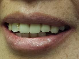 She was missing more than half of her upper teeth on the left. Other dentists say they can't make a partial denture. All her upper teeth have to be extracted. WE designed a partial denture for her, kept the rest of her teeth and restored her smile!